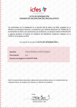 COMPROMISO DEL PROGRAMA: Al término del entrenamiento COMPLETO, con nuestro equipo de profesionales, estarás LISTO para presentar el examen ICFES – SABER VALIDACIÓN, y una vez SUPERADA la prueba escrita con un mínimo de 30 puntos, el Instituto Colombiano para la Evaluación de la Educación – ICFES, en nombre del Ministerio de Educación Nacional, te expedirá el correspondiente diploma de BACHILLER ACADÉMICO.