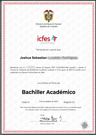- *Diploma de bachiller académico.