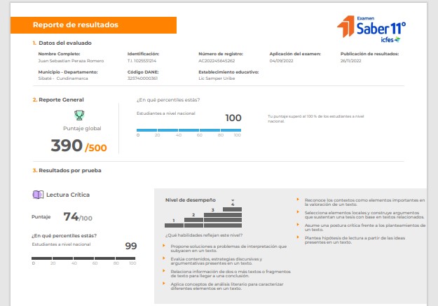 Nuestro aprendiz Juan Sebastián, estudiante del Liceo Samper Uribe en Sibaté Cundinamarca, lo confirma. «mejor ICFES municipal 2022. puntaje 390